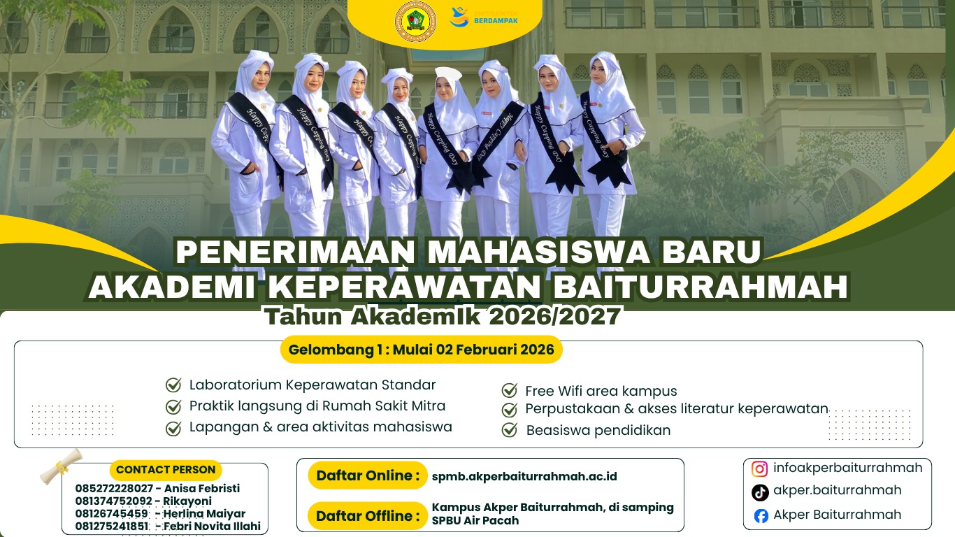 Read more +12 Januari 2026 in AkademikAkademi Keperawatan Baiturrahmah Gelar Wisuda ke-38 Bersama Universitas Baiturrahmah